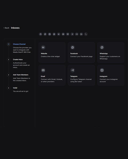 Link their web widget, social accounts, email, SMS, and messaging apps — so messages flow directly into your unified inbox.