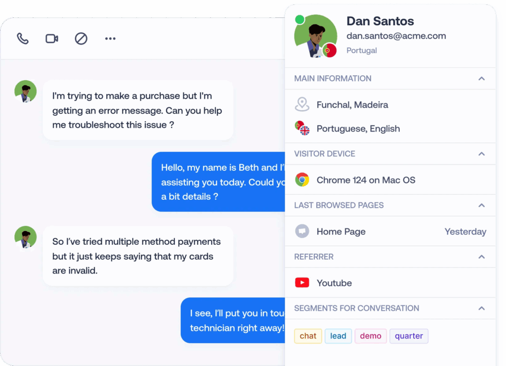 Address the immediate needs of customers with a real-time conversation that ensures queries are answered promptly, efficiently and qualitatively.